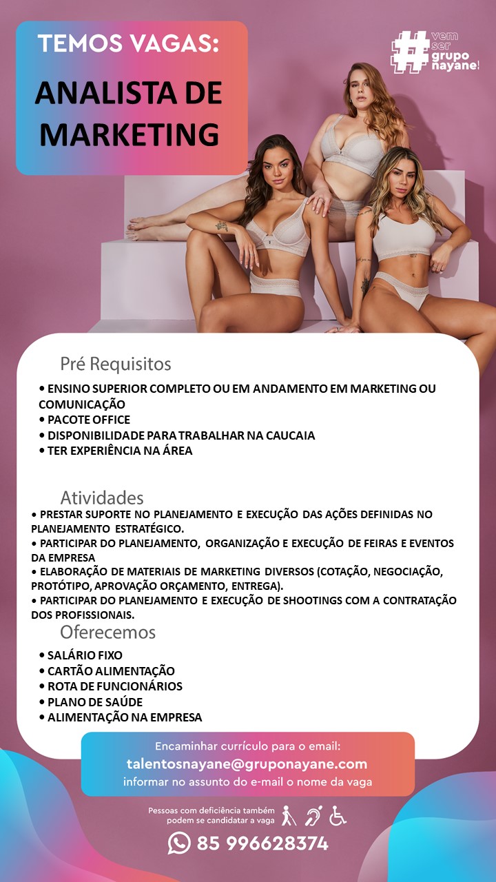 • ensino superior completo ou em andamento em marketing ou comunicação