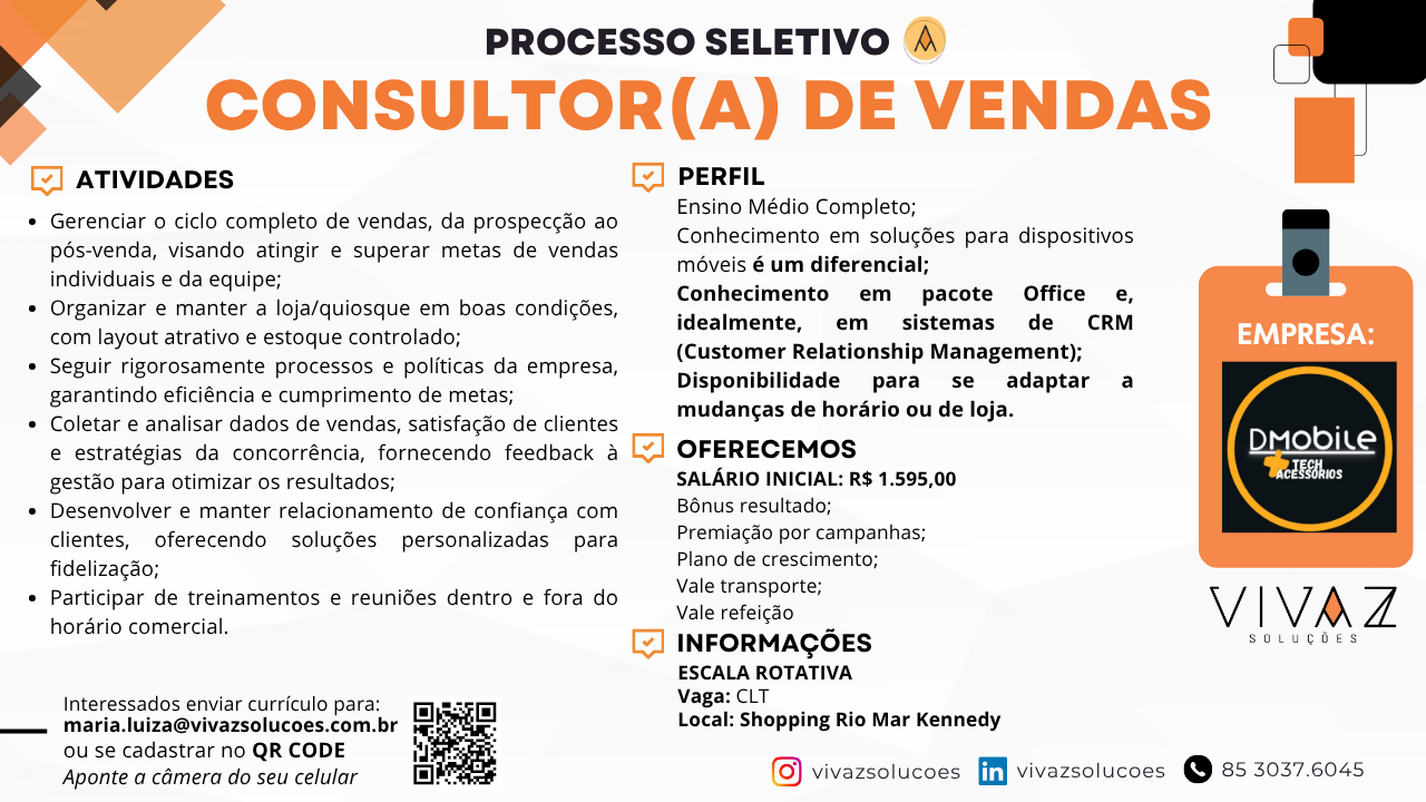 Estamos contratando: CONSULTOR(A) DE VENDAS