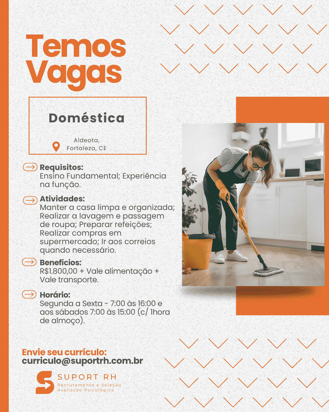 Manter a casa limpa e organizada; Realizar a lavagem e passagem de roupa;