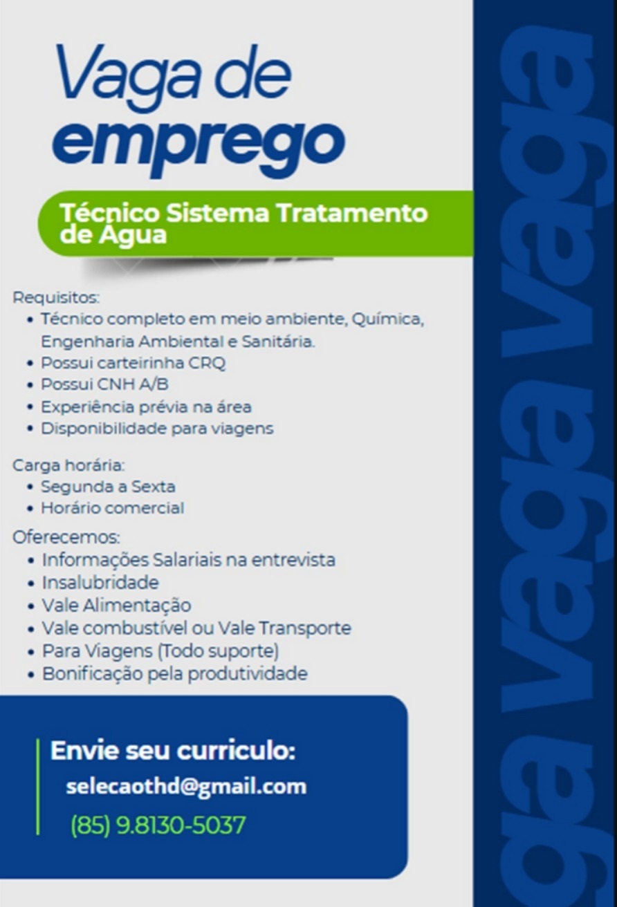 Operar estações de tratamento de esgoto doméstico e efluentes industriais, monitorando os parâmetros físico-químicos e bacteriológicos; Coletar amostras em diferentes etapas do processo (gradeamento, caixa de areia, tanques de aeração) e realizar análises de laboratório. Monitorar a qualidade do ar e controlar emissões de gases/partículas, quando aplicável em ambientes industriais.