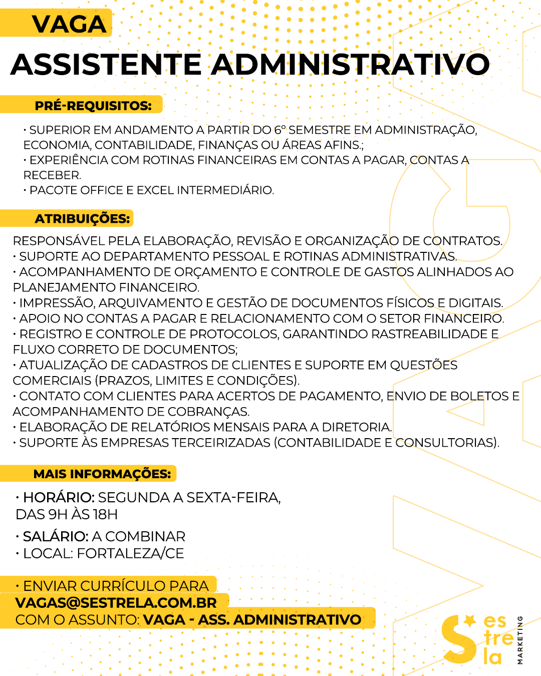 • Apoio no contas a pagar e relacionamento com o setor financeiro.