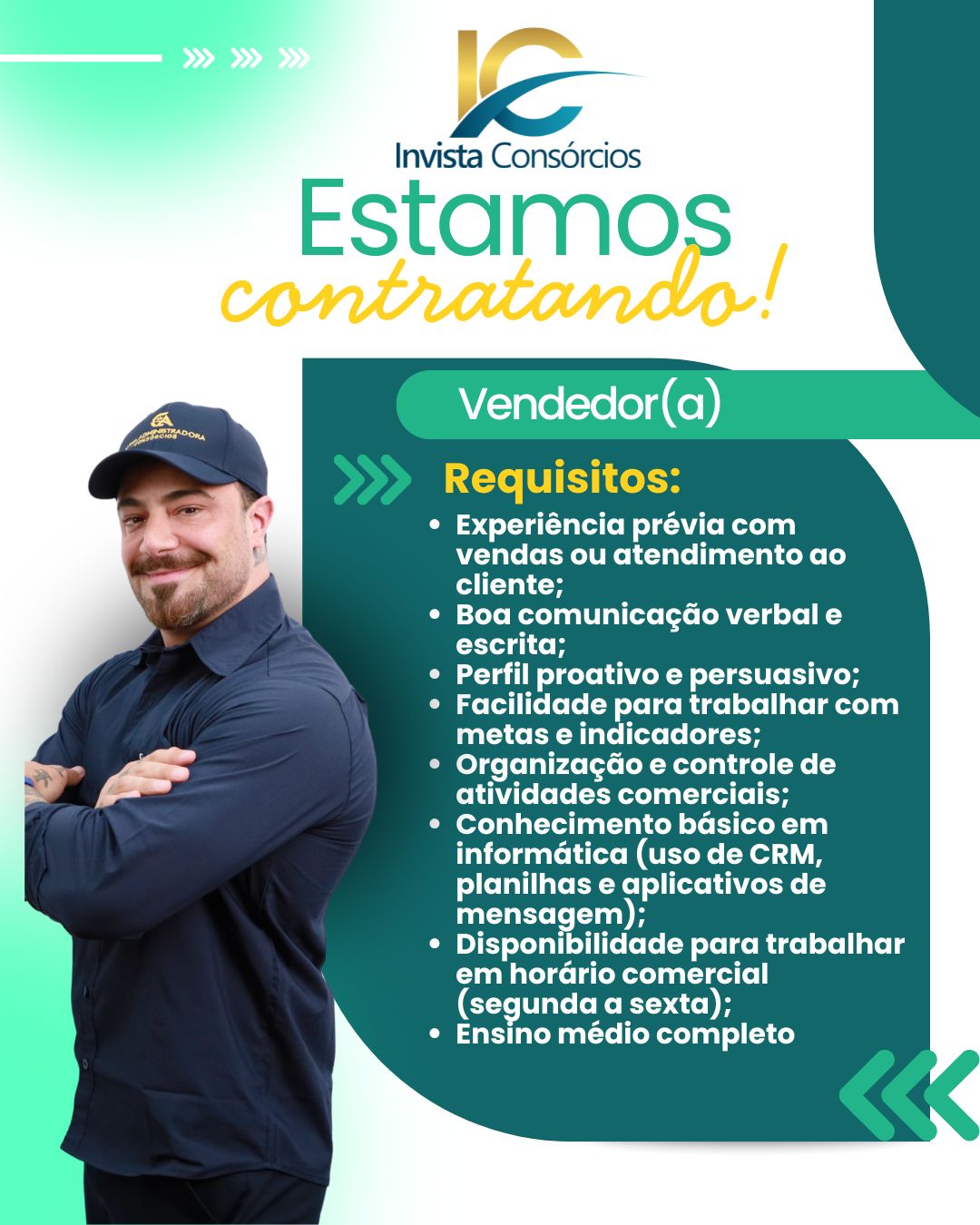 Buscamos profissionais com atitude, boa comunicação e foco em resultados. Aqui, valorizamos a transparência, o crescimento e o compromisso em transformar vidas por meio do consórcio.