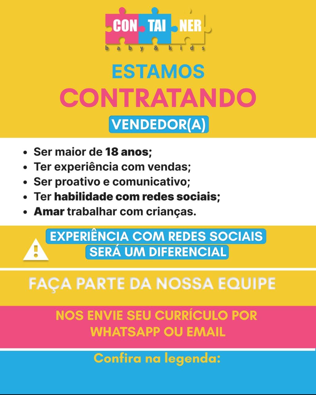 ✨ VAGA DE EMPREGO – VENDEDORA ✨